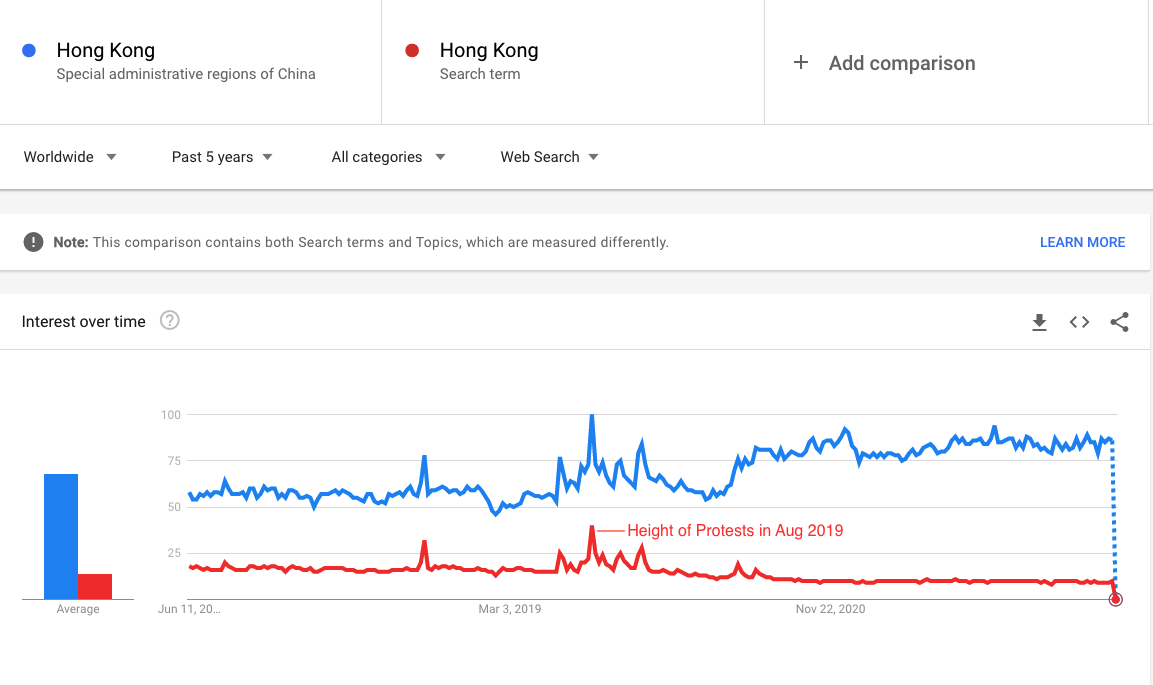 In March 2019 thousands marched on the government headquarters, this was the first wave of seven months of protests which enjoyed mass support from Hong Kong’s people. Protest organisers claim that at the height of August 2019 1.7 million people, nearly a quarter of the population marched together. Calculations of protest numbers are politically contentious, and work such as this Rueter’s investigation can be useful in assessing crowd sizes. However, faced with violent reprisal from police, protest turnout is not an accurate measure of popular opinion.
